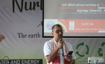 Dr. Ashoke Deb, the workshop coordinator, expressed his delight that the workshop was being held in North Eastern India after a long interval. A native of Shillong, Meghalaya, he completed his post-graduation at NEHU, Shillong, and earned his Ph.D. from IIT Bombay. He extended his heartfelt gratitude to the convener and local coordinator Dr. Nabajyoti Saikia, Dean of the School of Basic Sciences; co-coordinator Dr. Ratan Kumar Saha; and joint secretaries Dr. Satyabrat Gogoi, Dr. Sarfraz Ahmed, Dr. Munu Borah, and Dr. Rekha Rani Dutta for their dedicated efforts toward the noble cause of popularizing nuclear science and radioisotopes.