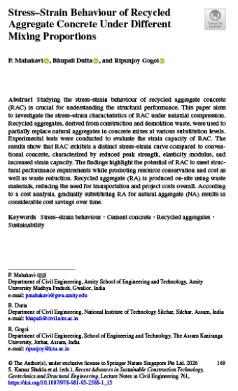 - Stress–Strain Behaviour of Recycled Aggregate Concrete Under Different Mixing Proportions - https://link.springer.com/chapter/10.1007/978-981-95-2588-1_15