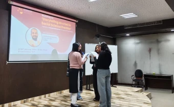 The session highlighted that stories are not just for entertainment. They are essential tools for connecting with people, conducting academic research, and shaping public policies and political will. The facilitator also explained the important difference between empathy and sympathy, and discussed how poems can reflect social development. The facilitator conducted activities like group reading exercises and expressive relays to engage with the students’ emotions. The workshop concluded with an experience sharing activity, allowing students to practice collaboration and apply what they learned.