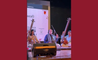 The festival began with a Borgeet performance by Reepa Goswami Barua, followed by a lecture-demonstration on “Gamaks in Indian Classical Music” featuring Ustad Dagar, music theorist EJ Sajith, and sarod player Tarun Kalita.