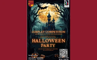 The Literary Club of The Assam Kaziranga University organized a Cosplay Competition on 31st October 2025 as part of the Halloween Day celebration. The event began with an address by Dr. Saurabhi Sarmah, Director of Student Welfare (DSW), who inaugurated the celebration with her inspiring words on the importance of creativity, self-expression, and cultural participation among students. Following her speech, the event commenced with a soulful tribute dedicated to honour the legacy of Zubeen Garg (Zubeen Da), Assam’s most iconic and beloved musical personalities. Two students performed his timeless song “Mayabini” on stage, and in a deeply moving moment, everyone in the auditorium stood up and joined in singing together, creating an atmosphere filled with emotion and unity. This heartfelt tribute beautifully set the tone for the celebration, blending cultural pride with artistic spirit.